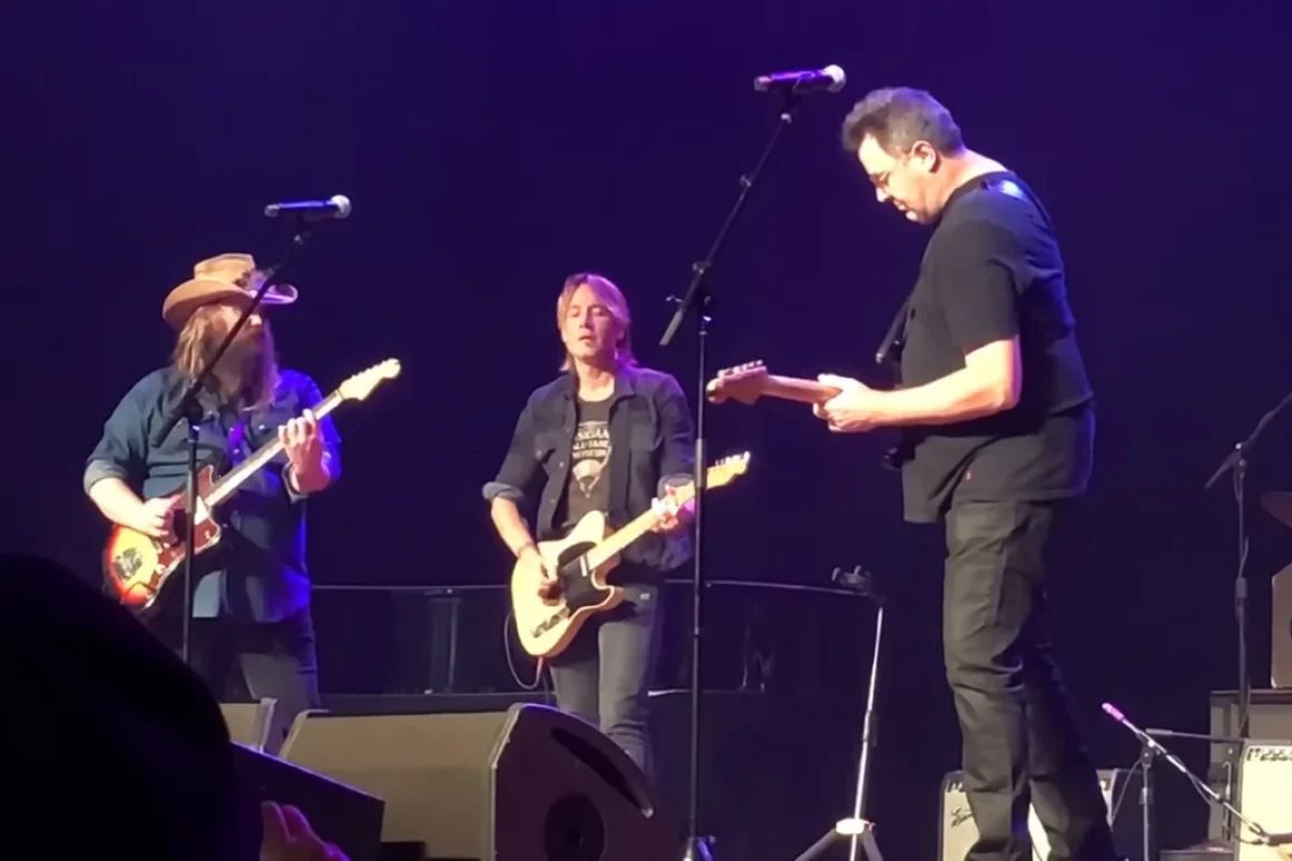 Keith Urban has been making music for over 30 years, and he’s still going strong today. He’s done so many cool things in his career, like marrying Nicole Kidman and teaming up with big stars such as Dolly Parton, Reba McEntire, Carrie Underwood, and Eric Church. He’s also made 11 albums full of songs that people love. Right now, he’s getting ready to share his newest album called High in September. But one of his most special moments happened when he performed on stage with two other awesome singers, Chris Stapleton and Vince Gill. When these three played their guitars together, it was something fans couldn’t stop talking about.